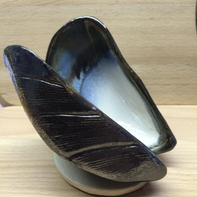 Mossel open op steun keramiek